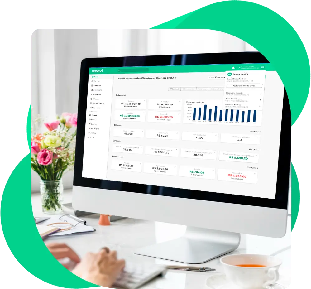 Gere várias cobranças de uma vez, receba pagamentos instantâneos e gerencie seu fluxo de caixa de forma automatizada com a Woovi